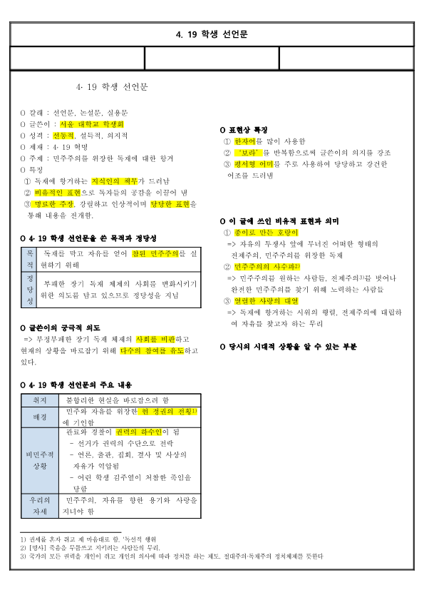 O 4․ 19 학생 선언문을 쓴 목적과 정당성