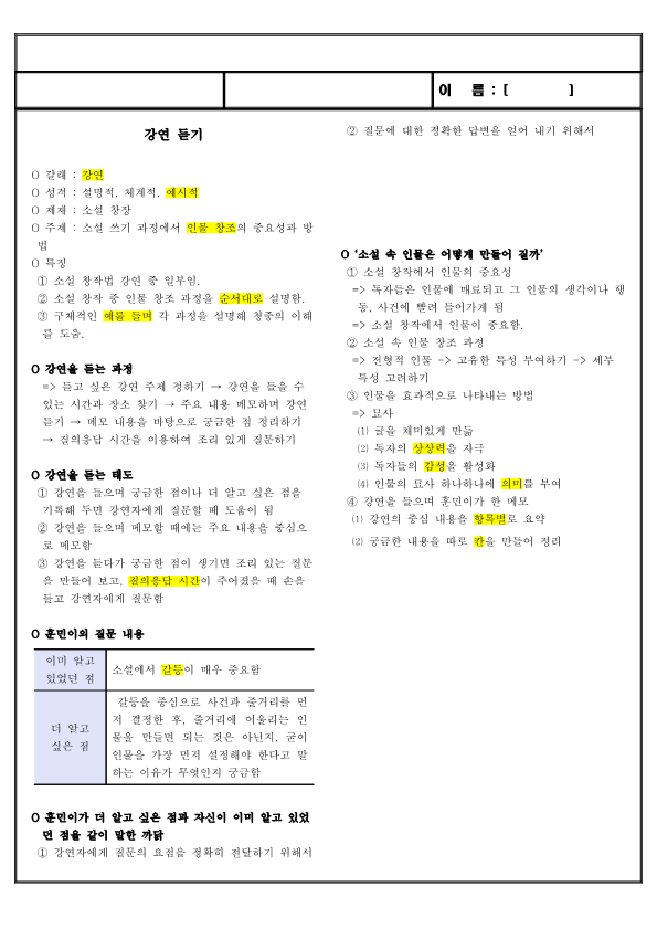 ① 강연을 들으며 궁금한 점이나 더 알고 싶은 점을 기록해 두면 강연자에게 질문할 때 도움이 됨