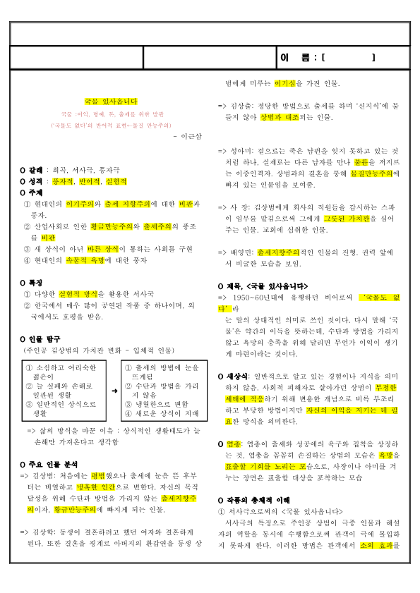 => 김상출: 정당한 방법으로 출세를 하며 ‘신지식’에 물 들지 않아 상범과 대조되는 인물.