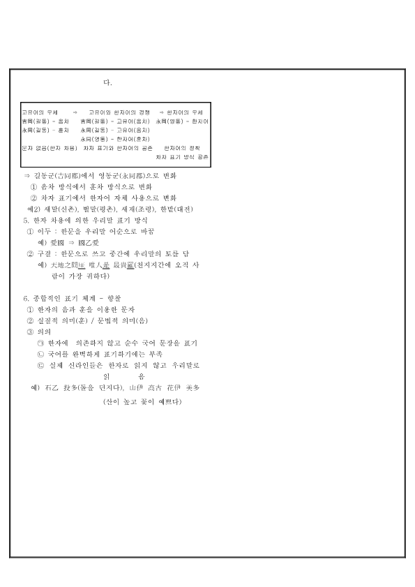 ② 차자 표기에서 한자어 자체 사용으로 변화