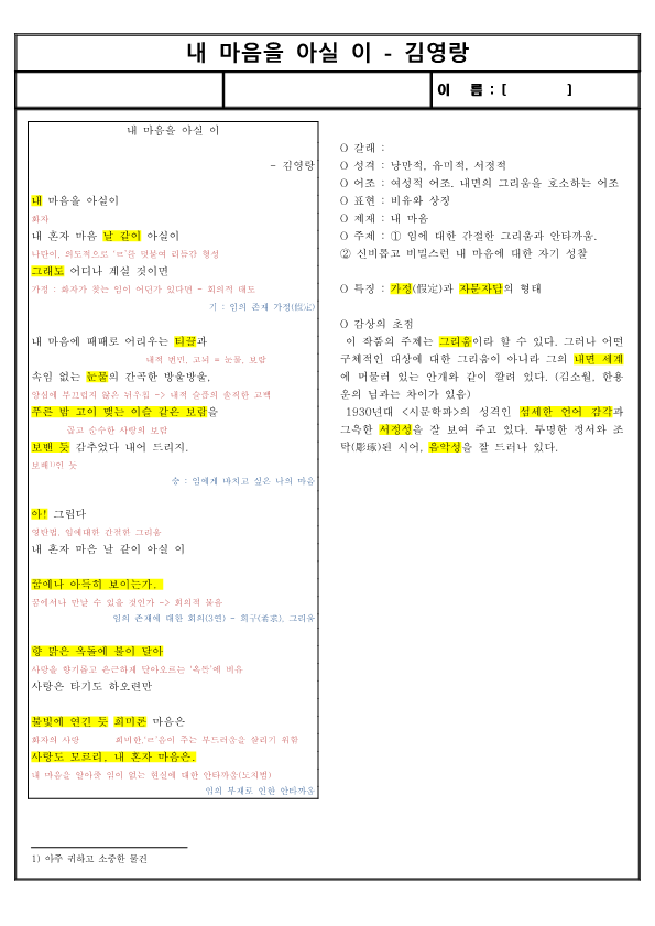 O 제재 : 내 마음