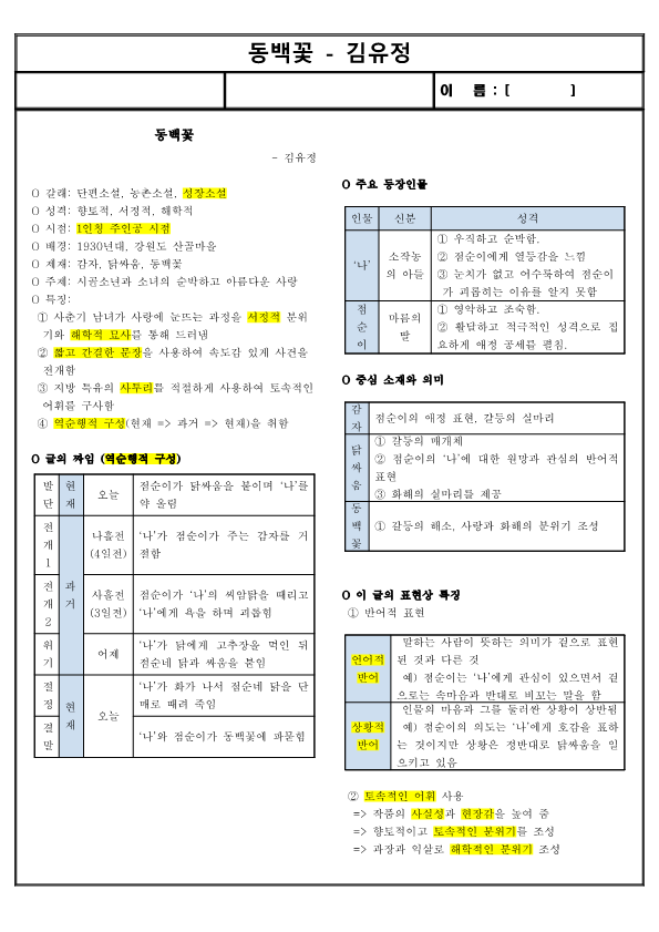 요점정리 전체 다운로드 동백꽃 - 김유정.pdf0.17MB