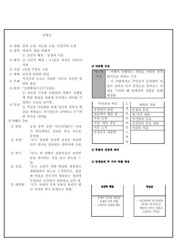 | O 주제: | 지식인의 눈으로 바라본 식민지 조선의 암담한 현실 |