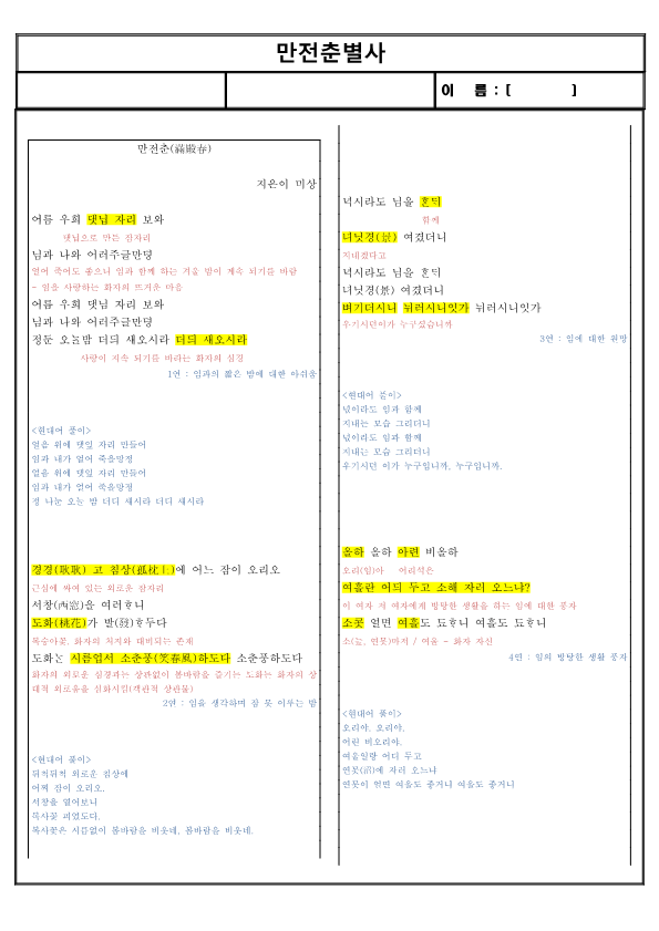 '요점정리 > 고전 운문' 카테고리의 다른 글