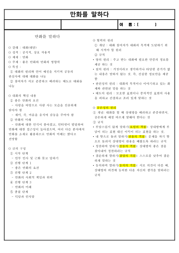 ① 대화의 원리와 언어 예절을 지키며 공동의 관심사에 대해 대화를 나눔