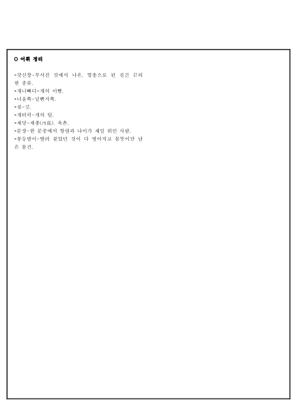 붓장사도 땜쟁이도 큰 개도 강아지도 모두 모닥불을 쪼