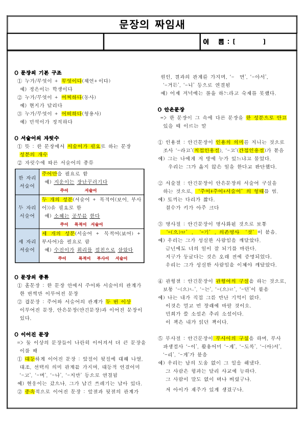 ① 홑문장 : 한 문장 안에서 주어와 서술어의 관계가