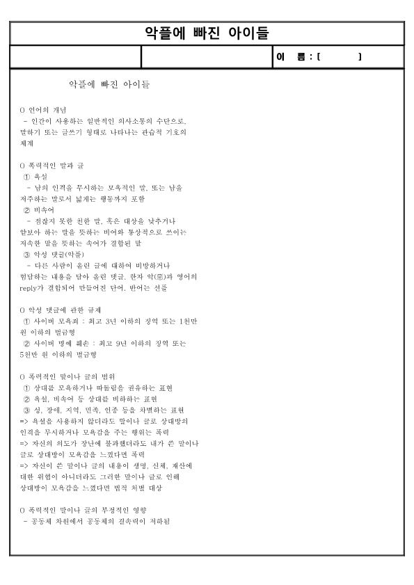 O 폭력적인 말이나 글의 부정적인 영향