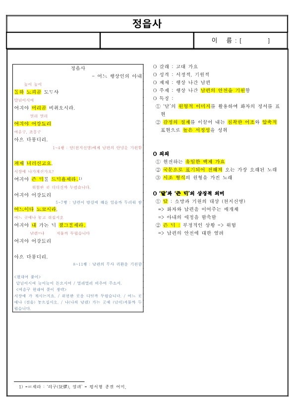달님이시여 높이높이 돋으시어 / 멀리멀리 비추어 주소서.