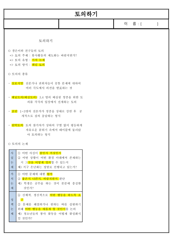 => 토의 유형 : 가치 논제