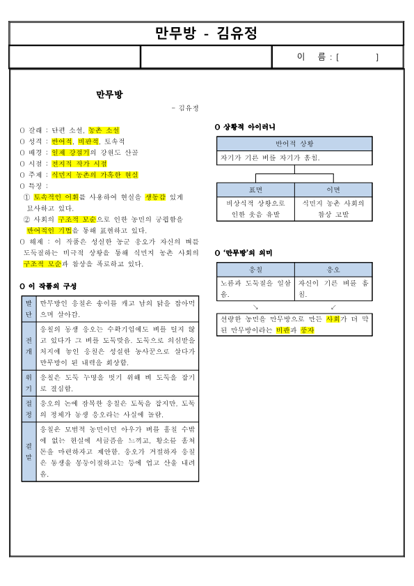 요점정리 전체 다운로드 만무방 - 김유정.pdf0.09MB