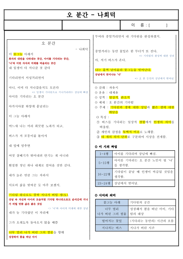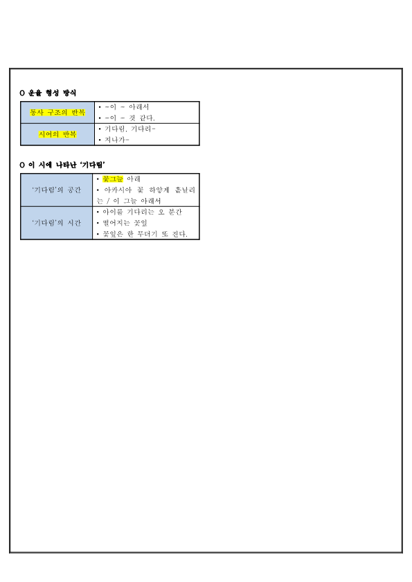 | 시어의 반복 | • 기다림, 기다리- • 지나가- |