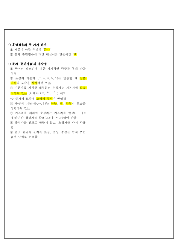 ➆ 음소 단위의 문자를 초성, 중성, 종성을 합쳐 쓰는 음절 단위로 운용함.