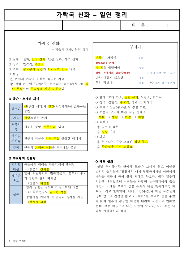O 주제 : 수로왕의 강림과 가락국의 건국 내력