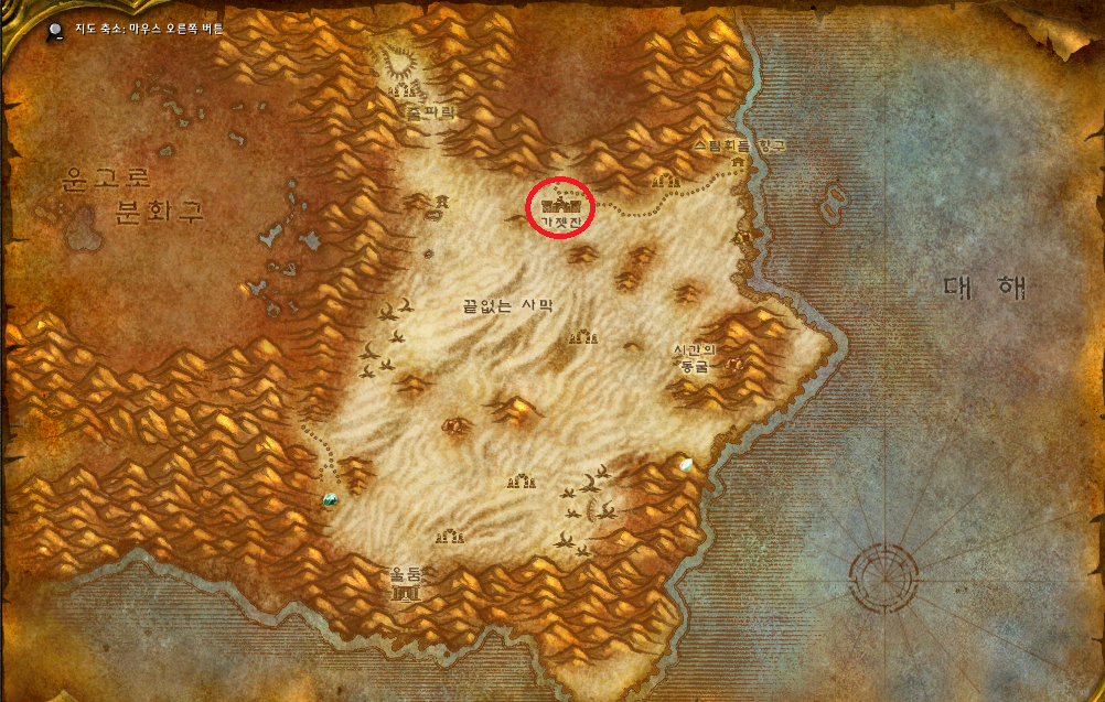 | 1-75(1) | - 대도시 - 시작 지역 두 번째 마을(칼바위 언덕 / 센진 마을 / 블러드후프 마을 / 브릴 / 골드샤이어 / 카라노스 / 돌라나르) |